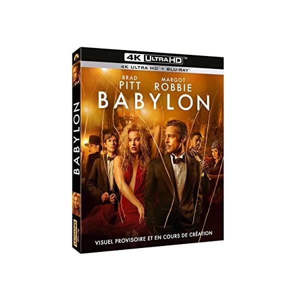 | Boîtier avec fourreau Contient : - le 4K Ultra HD du film (Dolby Vision et HDR10) - le Blu-ray du film - un Blu-ray de bonus 4K Ultra HD : Pas de bonus vidéo Blu-ray du film : Pas de bonus vidéo Blu-ray bonus (VOST) : "Babylon : une toile panoramique" : rencontre avec les acteurs et l'équipe (30'50") "Les costumes de Babylon" (2'51") "La Musique de Babylon" : rencontre avec Justin Hurwitz (1'50") 6 scènes coupées et versions longues (9'15", VOST) : - Manny conduit Jack (coupée) - Elinor discute avec un figurant (longue) - Salle de montage (coupée) - Dispute dans la loge (coupée) - Se repoudrer le nez (longue) - Recherche de passeport (coupée) |