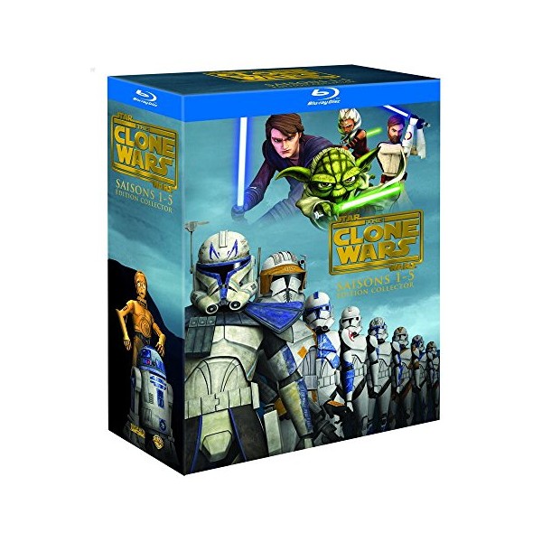 | Contient : - "Star Wars - The Clone Wars - Saison 1" - "Star Wars - The Clone Wars - Saison 2" - "Star Wars - The Clone Wars - Saison 3" - "Star Wars - The Clone Wars - Saison 4" - "Star Wars - The Clone Wars - Saison 5" "Les archives du temple Jedi" : galeries 2D et 3D (photos, croquis, dessins préparatoires, animations préliminaires et recherches) pour tous les épisodes (HD) Bandes-annonces (HD - VOST) Documentaires du réalisateur et de l'équipe de production (HD - VOST) |