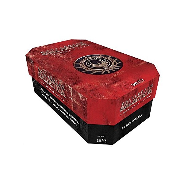 | Contient : - "Battlestar Galactica - Saison 1" - "Battlestar Galactica - Saison 2" - "Battlestar Galactica - Saison 3" - "Battlestar Galactica - Saison 4" - "Battlestar Galactica - Razor" - "Battlestar Galactica - The Plan" - "Caprica - L'intégrale de la série" - "Battlestar Galactica : Blood & Chrome" - "Galactica, la bataille de l'espace" (HD 1080p AVC - 1.85 - 124'18" - VOST DTS-HD MA 5.1 / VF DTS 2.0) - Galactica, l'intégrale de la série (HD 1080p AVC - 1.33 - 1978 - VOST DTS-HD MA 5.1 / VF DTS 2.0) - Galactica 1980, l'intégrale de la série (HD 1080p AVC - 1.33 - 1980 - VOST DTS-HD MA 2.0 / VF DTS 2.0) Saison 1 : Introduction du pilote par Ronald D. Moore (1'23" - VOST) Scènes coupées du pilote et de la saison 1 (VOST) Commentaires audio (VOST) "De 1978 à nos jours" : documentaire sur les liens avec la série de 1978 et la genèse de la nouvelle version ("Battlestar Galactica: The Lowdown" - 20'19" - VOST) Galerie photos : diaporama de dessins préparatoires, photos de maquettes et du tournage (4'12") "La bande originale" : - Bande originale intégrale du pilote composée par Richard Gibbs (26 morceaux - DTS-HD Master Audio 2.0 - 68'50") - Bande originale intégrale de la saison 1 composée par Bear McCreary (30 morceaux - DTS-HD Master Audio 2.0 - 79'01") "Dans les coulisses" : making of en 8 parties (63'09" - VOST) "L'Oracle" : intégralité des informations disponibles dans le bonus U-Control (14'07" - VF) Bonus U-Control : - "L'Oracle" : informations sur les personnages et les vaisseaux en cours de visionnage (VF) - "Picture in Picture" : interviews des acteurs et des membres de l'équipe en cours de visionnage (VOST) Saison 2 : Scènes coupées Commentaires audio (VOST) Épisode "Pegasus" en version longue (HD - DTS-HD MA 5.1 - 58'54" - VF + VOST) "Coup d'oeil sur la suite de la saison 2" : interviews à la mi-saison (3'27" - VOST) "Le nouveau Battlestar Galactica" : documentaire et interviews sur le démarrage de la série ("The Series, The Lowdown" - 20'22" - VOST) "Les logos de R&D TV" : compilation des petites animations de fin de générique des saisons 1 et 2 avec Ronald D. Moore et David Eick (2'27" - VOST) 7 vidéoblogs de David Eick (prod. exec.) (VOST) "La bande originale" : bande originale intégrale de la saison 2 composée par Bear McCreary (23 morceaux - DTS-HD Master Audio 2.0 - 79'14") Bonus U-Control : - "L'Oracle" : informations sur les personnages et les vaisseaux en cours de visionnage (VF) Saison 3 : Scènes coupées Commentaires audio (VOST) "Resistance" : intégrale des webisodes "The Resistance" (25'24" - 1.78 - 4/3 - VOST) 22 vidéoblogs de David Eick (prod. exec.) (VOST) "La bande originale" : bande originale de la saison 3 composée par Bear McCreary (19 morceaux - DTS-HD Master Audio 2.0 - 73'43") Bonus U-Control : - "L'Oracle" : informations sur les personnages et les vaisseaux en cours de visionnage (VF) Saison 4 : Scènes coupées Commentaires audio (VOST) "Que s'est-il passé dans Battlestar Galactica" : résumé express des 3 premières saisons (8'10" - VOST) Versions longues des épisodes : - "La motion de Zarek" (HD - DTS-HD MA 5.1 - 53'05" - VF + VOST) - "La naissance d'un ange" (HD - DTS-HD MA 5.1 - 63'06" - VF + VOST) - "La mère de l'Humanité" (HD - DTS-HD MA 5.1 - 152'35" - VF + VOST) Tests de connaissances (VF) : - "Testez vos connaissances sur la série" (60 questions) - "Que serait votre rôle dans la Flotte ?" (30 questions) - "Êtes-vous un cylon ?" (30 questions) Rétrospective en 6 parties (HD - 36'56" - VOST) "Les derniers épisodes" : preview de la seconde partie de la saison (1'21" - VOST) "Les douze cylons" : portrait des 12 cylons (15'56" - VOST) "Le voyage" : rétrospective avec l'équipe avant la fin de la série (20'55" - VOST) "Un long voyage se termine" : sur le tournage du dernier épisode et la fin de la série (HD - 12'47" - VOST) "... et ils ont un plan" : qu'est-ce que "le plan" ? (HD - 4'27" - VOST) Teaser de "Caprica"(1'33" - VOST) 21 videoblogs du co-producteur David Eick (75'16" - VOST) "Battlestar Galactica au Festival Jules Verne - 26 avril 2009 au Grand Rex à Paris" : rencontre avec Jamie Bamber, James Callis et Mary McDonnell (HD - 26'35" - VF/VOST) "L'évolution des personnages" : bonus U-Control sur la version longue de l'épisode "La mère de l'Humanité" avec rétrospective des personnages principaux (VOST) Bear McCreary et la musique de Battlestar Galactica : - "La bande originale" : bande originale de la saison 4 composée par Bear McCreary (28 morceaux - DTS-HD Master Audio 2.0 - 97'19") - La musique de "La mère de l'Humanité" : making of de la musique du dernier épisode de la série (DD 5.1 - VOST) - "La musique de Battlestar Galactica" : module "gag" avec Bear McCreary (22'35" - VOST) - "L'évolution d'un morceau" : making of du morceau "Laura Runs" (23'14" - VOST) - Table de mixage interactive sur le morceau "Laura Runs" : 4 groupes d'instruments à activer/désactiver (DTS 5.1 - 2'09") - "Bear McCreary and the Battlestar Galactica Orchestra (live)" : 6 titres en live (HD - 34'12" - DTS-HD MA 5.1) Razor : Téléfilm proposé en version courte (88') et version longue (104') 2 scènes coupées (3'37" - VOST) Commentaire audio de Ronald D. Moore et Michael Taylor sur la version longue (VOST) "Le look de Battlestar Galactica" (7'45" - VOST) "Mon épisode préféré" (10'20" - VOST) "Ce que réserve la saison 4" (2'35" - VOST) Bande-annonce de la saison 4 (48" - VOST) "Les minisodes de Razor" (19'27" - 1.78 - 16/9 - VOST) Making of de "Razor" (19'53" - VOST) "La bande originale" : bande originale intégrale du téléfilm composée par Bear McCreary (24 morceaux - DTS-HD Master Audio 2.0 - 41'19") Bonus U-control : - "L'Oracle" : informations sur les personnages et les vaisseaux en cours de visionnage (VF) - "Picture in Picture" : interviews et coulisses en cours de visionnage (VOST) The Plan : 7 scènes coupées (13'57" - VOST) Commentaire audio de Edward James Olmos et Jane Espenson (VOST